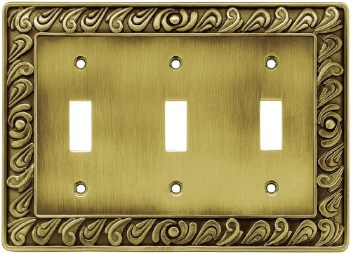 Franklin Brass 64055 Paisley Triple Toogle Switch Wall Plate / Switch Plate / Cover Tumbled Antique Brass