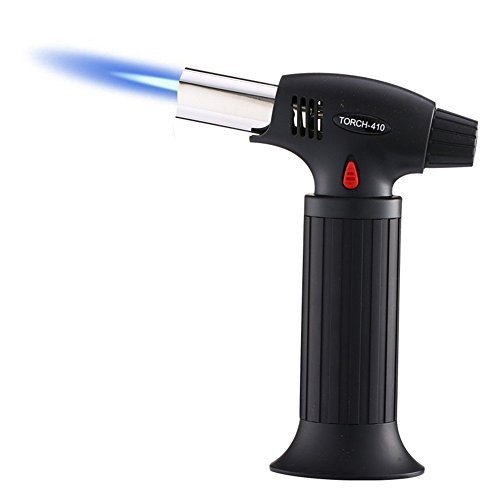 JUN-L Micro Butane Gas Torch Lighter for Creme Brulee Chefs Butane TorchCulinary Blowtorch for Cooking Baking Searing Welding Soldering Brazing Refillable Tool (Black)