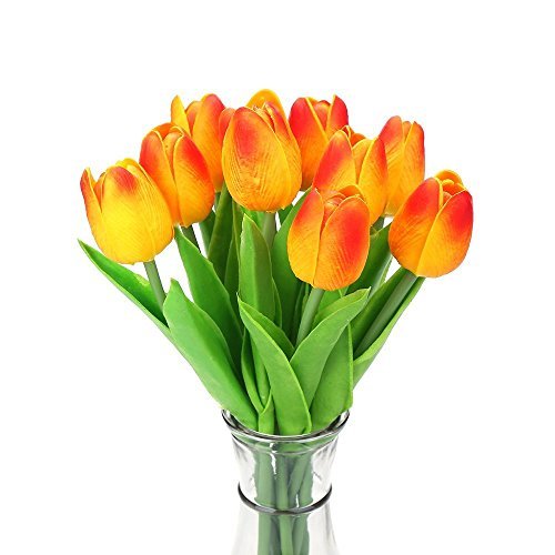 Labellevie 10 Pcs Mini Tulip Flower Artificial PU Home Party Wedding Decoration Sunset red