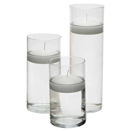 Glass Cylinder Vases - SET OF 3 - Including 3 FLOATING DISC CANDLES Decorative Centerpieces For Home or Wedding by Royal Imports