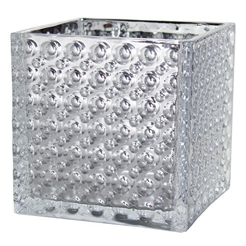 6 x 6 x 6 Dimpled Silver Mercury Glass Cube Vase or Candle Holder [並行輸入品]