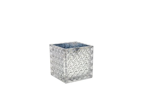 Flower Glass Vase Decorative Centerpiece For Home or Wedding by Royal Imports - Elegant Dimple Effect Cube 4 Tall 4x4 Opening Silver [並行輸入品]