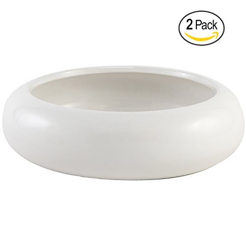 Flower Glass Vase Decorative Centerpiece For Home or Wedding by Royal Imports - Set of 2 Ceramic Ming Bowl Round Flat Shape 2.25tall 7.5 Opening White