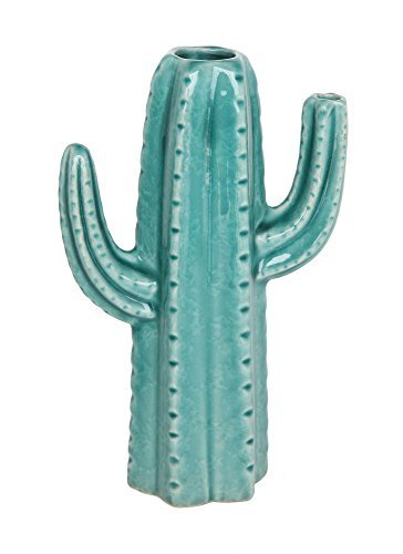 Creative Co-Op Decorative Cactus Shaped Stoneware Vase Blue [並行輸入品]