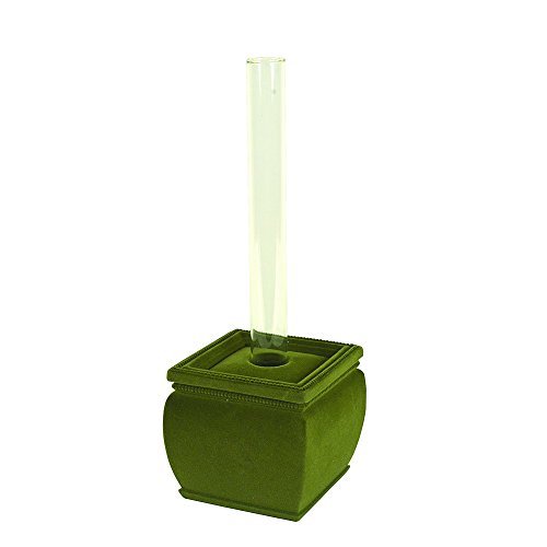 Creative Co-Op Green Flocked Resin Base with Glass Test Tube Vase [並行輸入品]
