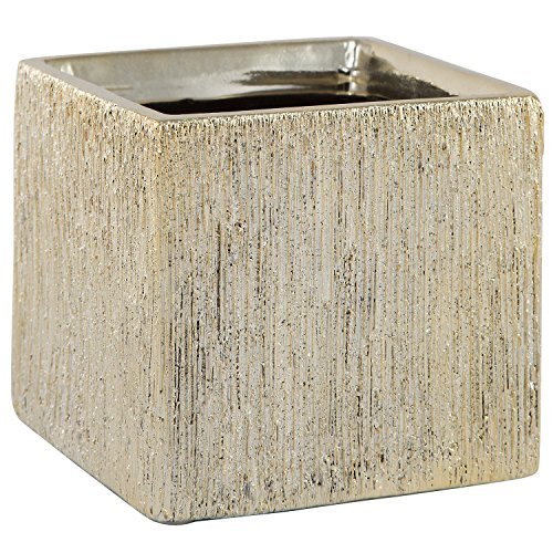 Flower Glass Vase Decorative Centerpiece For Home or Wedding by Royal Imports - Ceramic Etched Cube Shape 4 Inch Tall 4X4 Gold [並行輸入品]