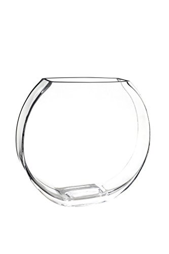 Flower Glass Vase Decorative Centerpiece For Home or Wedding by Royal Imports - Flat Fishbowl Shape 7.5 Tall 5 Opening