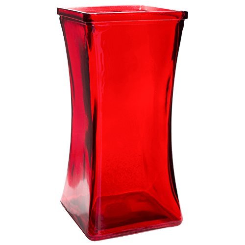 Flower Rose Bunch Glass Gathering Vase Decorative Centerpiece For Home or Wedding (Fits Dozen Roses) by Royal Imports - Square - 8.75 Tall 4.5 Opening Red