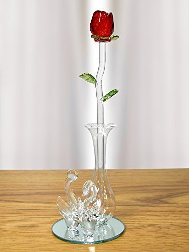 Crystal Rose and Vase - Glass Red Rose in Vase with Crystal Swan Figurines - Forever Rose - Glass Flowers [並行輸入品]