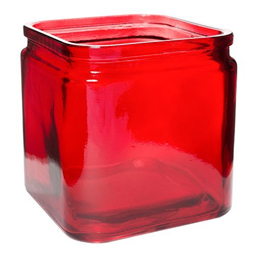 Flower Rose Glass Lip Cube Vase Decorative Centerpiece For Home or Wedding by Royal Imports - 5 Tall 5 Opening Red