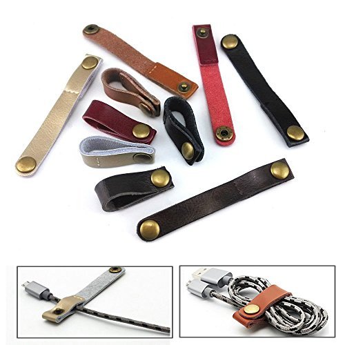 BronaGrand 10pcs Colorful Leather Snap Button Desktop Cable Wire Management Cable Cord Winder Cable Organizer Earphone Bobbin Winder