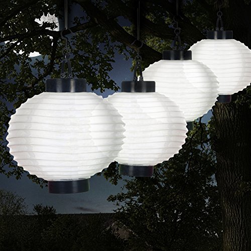Pure Garden 50-19-W Outdoor Solar Chinese LED Lanterns White