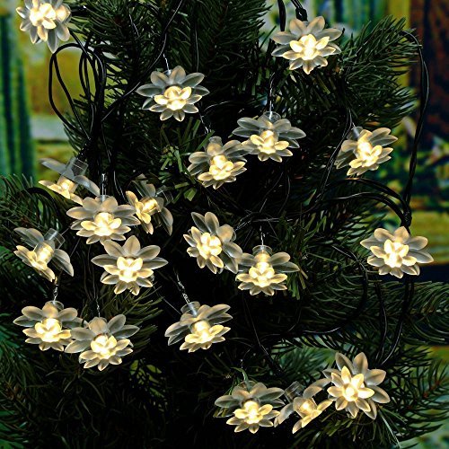 Lixada Outdoor Garden Solar Powered 5.8M 20LED Warm White Lotus Flower Light Control String Fairy Lamp for Party Wedding Room Decor [並行輸入品]