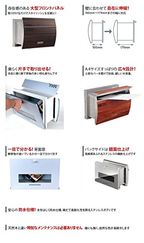 (レオン)LEON 郵便ポスト mail box デザイナーズ ポスト MB0310 ステンレス 木目調 埋め込み型 エボニーウッド (ダークブラウン)