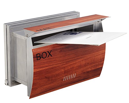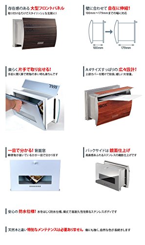 (レオン)LEON 郵便ポスト mail box デザイナーズ ポスト MB0310 ステンレス 木目調 埋め込み型 プラムウッド (ナチュラル)