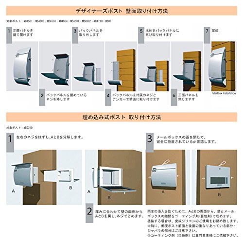 取り付けは壁面、専用ポール(MB-P1)共に共用のネジ留めとなります。