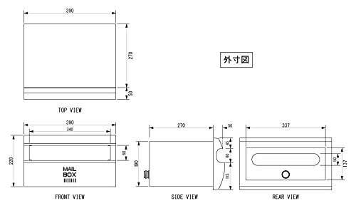ポスト:横390mmx縦220mmx厚み320mm/投函口サイズ:長さ340mm,幅60mm