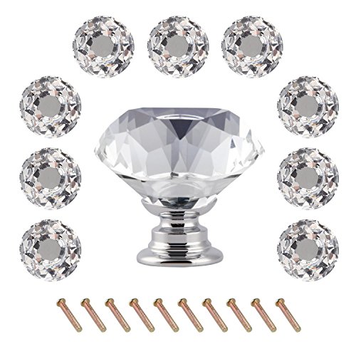 lEshPクリスタルガラスキャビネットノブ食器棚引き出し10 x 30 mmダイヤモンドアクリル引き出しドアハンドルwith Screw forキャビネット家具キッチンホームデコレーション10個入り