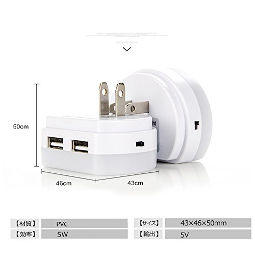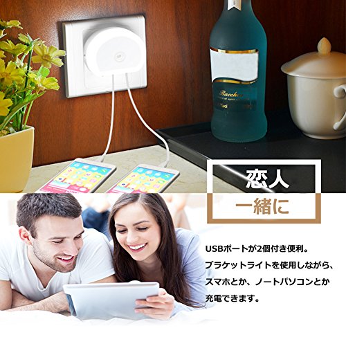 - ◆【USBポート付き】コンセントに差し込むだけで簡単に電源が取れる!USBポートが2個ついた便利なLEDナイトライトです。このブラケットライトを使用しながら、スマホとか、ノートパソコンとか充電できます。本体にも差込口が付いているので、他の電器を使用している時も邪魔になりません。