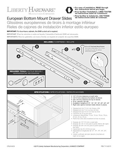 European self-closing bottom mount 100-Pound load capacity Easy to follow instructions and mounting hardware included