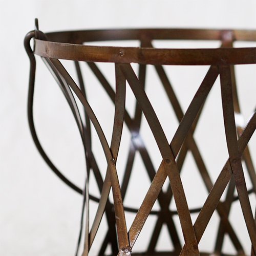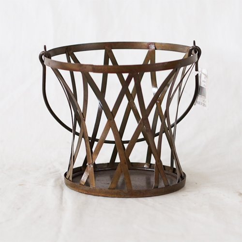 フラットバーをクロスさせた可愛い取っ手付きのバスケット。4号ポットの観葉植物を入れたりフラワーアレンジ容器としてお洒落なインテリア空間を演出します。