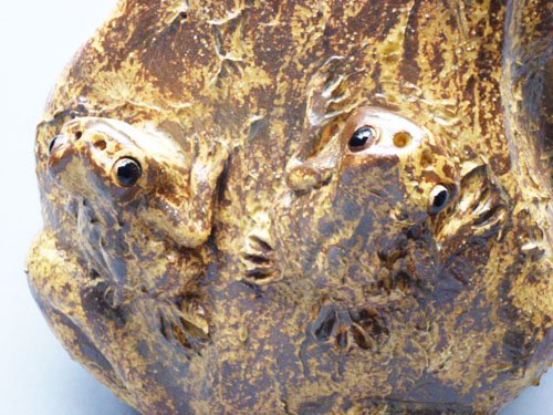 信楽焼 蛙(子2匹) 12号 /陶器置物