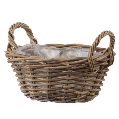 手織りの籐のバスケット。大型のものは、プラスチック内容器付のため、屋外でも使用しやすく耐久性があります。