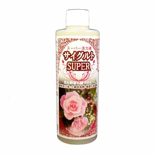 - 使い方: ジョーロ(4~6?)にキャップ1杯(5cc)~2杯 のサイグルトSuperを入れて水で薄め、月2回程度、葉面散布または土壌潅水します。 特に活力を高めたいときはジョーロ(4~6?)にキャップ5杯程度使用して下さい。使用目安として、花壇等では3坪(10㎡)当り、容器栽培では土壌50?当り10cc(キャップ2杯)のサイグルトSuperを水で100~1000倍に薄めて使用します。