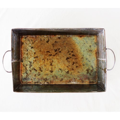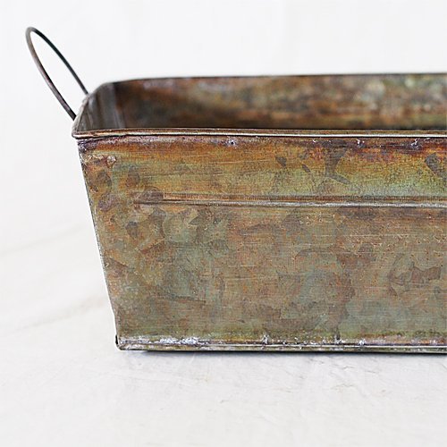 カルチベーター ブリキ アンティークブラウン 長方形 耳付籠 34cm