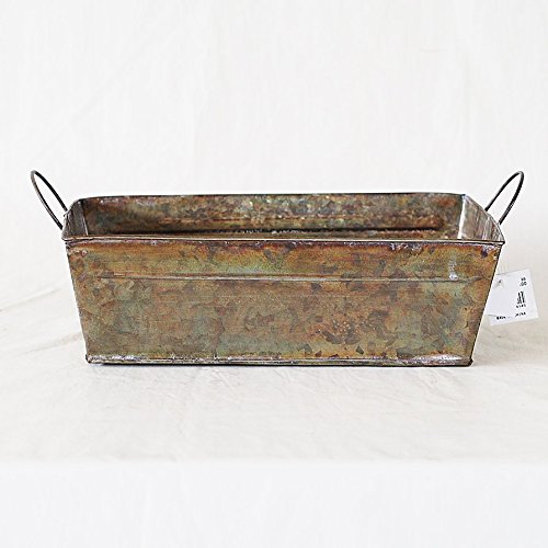 アンティークブラウンのブリキのプランターボックスです。3.5号サイズのポットが6個収まります。直植えされる時はネオコールやエコラン土のような水耕栽培用売培土をお使いください。