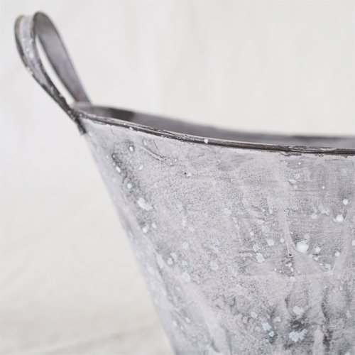 カルチベーター ブリキ アンティークシルバー 耳付舟型寄鉢籠 S 29cm