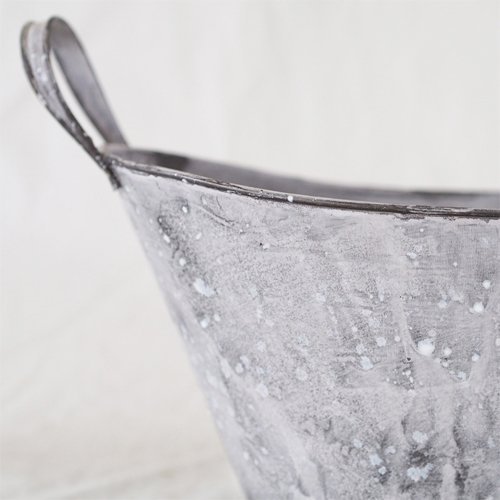 カルチベーター ブリキ アンティークシルバー 耳付舟型寄鉢籠 M 34cm