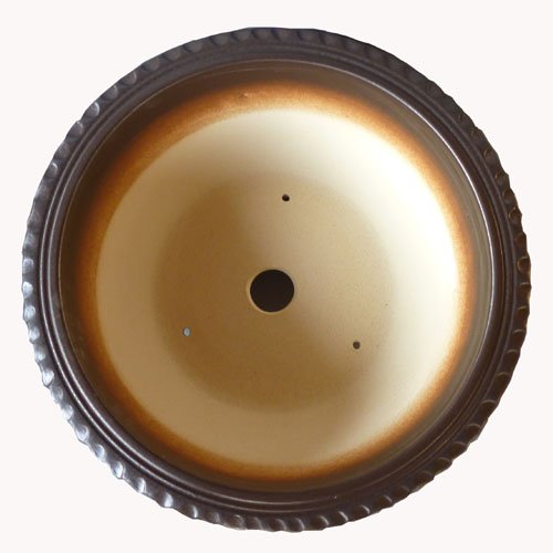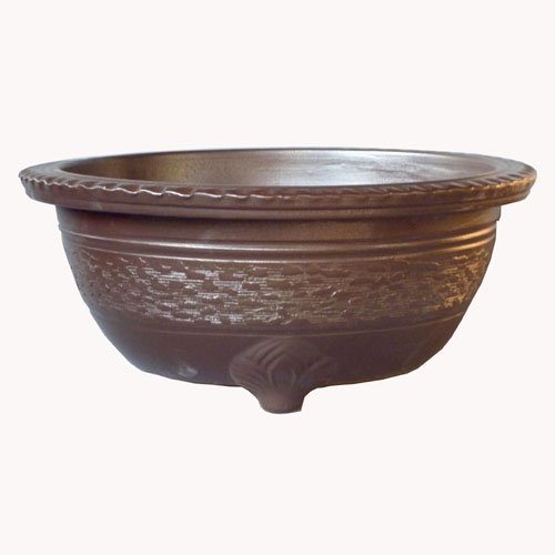 信楽の粘りのある粘土がこの大きさを可能にしました。信楽独特の窯肌釉に櫛目を入れた、手造りの一品です。花木、実物盆栽、松柏など広く使われています。