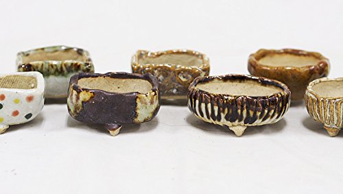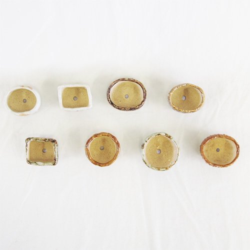 1品1品完全手作りの信楽焼小品盆栽鉢です。丸、楕円、長角の8点アソートです。色は当方お任せとなります。掲載の写真はあくまでアソートの一例です。