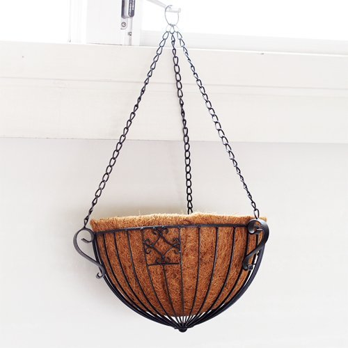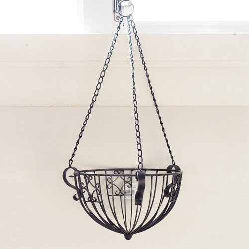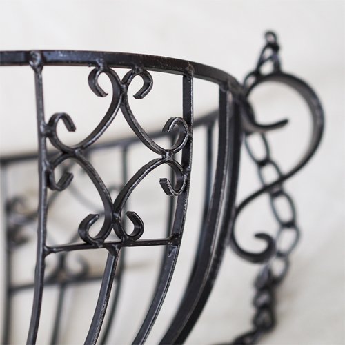 天井吊下げ型アイアン製バスケットです。グリーンを鉢ごと入れるのもよし、別売りのココファイバーシートを内貼りして花苗の直植えアレンジも可能です。お洒落な空間演出用にお使いください。