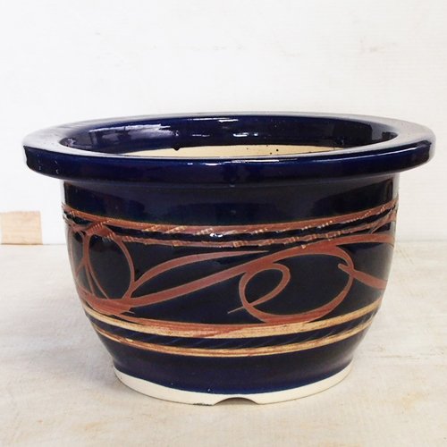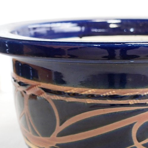 信楽焼 植木鉢 ルリ抜絵リン型 12号 アウトレット数量限定品