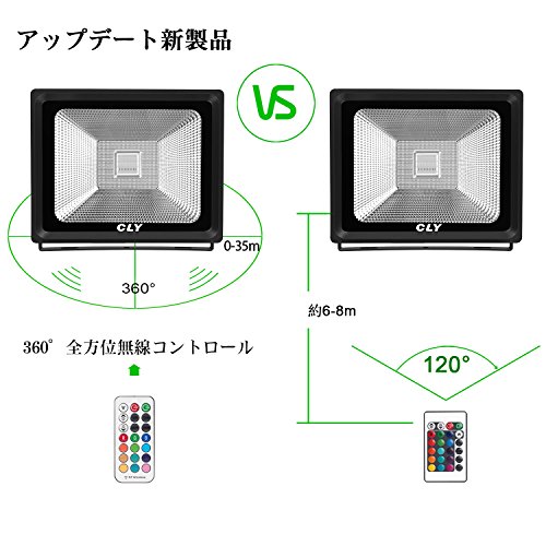 CLY 改良版 50W RGB投光器 LEDフラッドライト リモコン操作 16色イルミネーション 屋外照明 舞台照明 家庭用 看板灯 作業灯 演出ライト 防雨形(赤緑青)(2018改良版)