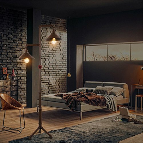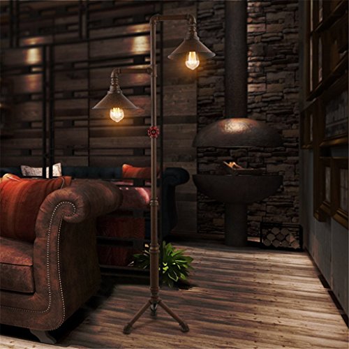 フロアランプ、 レトロ工業用フロアランプパイプ2フロアランプ工業用レトロ鍛鉄ランプ居間カフェレストランバーフロアランプ