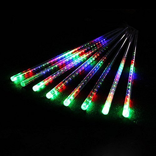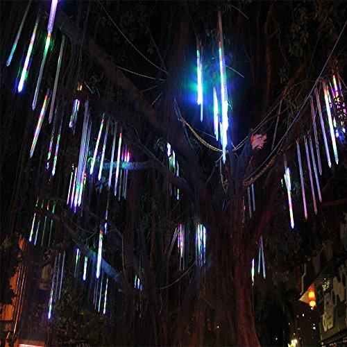 LINSAM ソーラー充電式 イルミネーションライト 高輝度LED144球 暗くなると自動点灯! 流れ星 防雨仕様 マルチカラー&30cm 8本セット