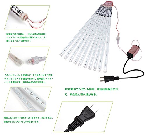 - 防滴加工部分は長め:普通の防滴加工イルミネーションライトは小雨に対応でき、LINSAMの装飾用ドロップライトの防滴部分は長かれまして、大雨にもガンガンで輝きます。