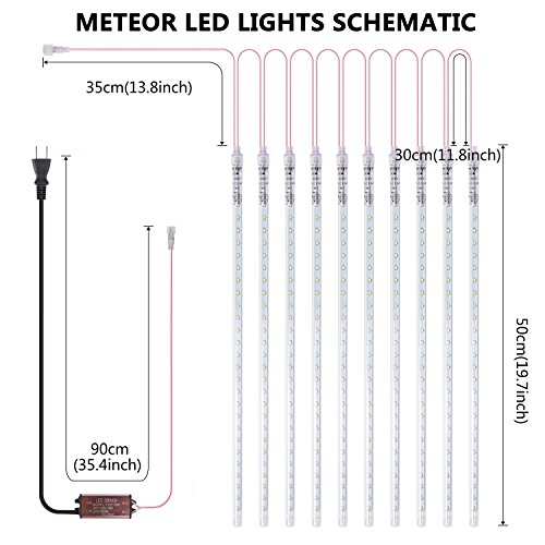 LINSAM 540LEDスノードロップライト イルミネーションストリングライト 流星 50cm 10本セット クリスマス装飾ライト ホワイト PSE認証済