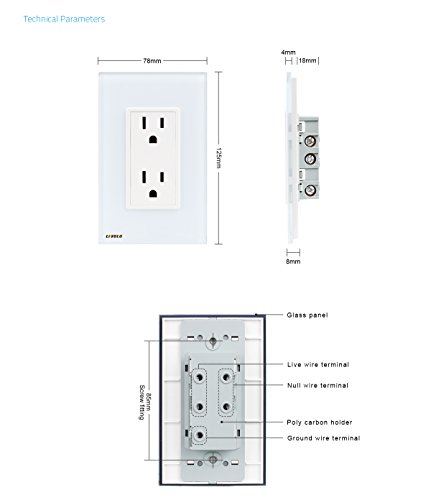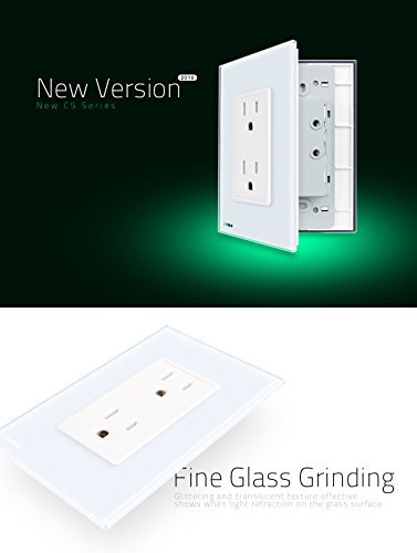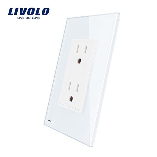 LIVOLOホワイトUSスタンダードUSソケット、強化ガラスパネル(15A)、AC 110〜220V、プラグ付きウォールパワーポイント,-C5C2US-11