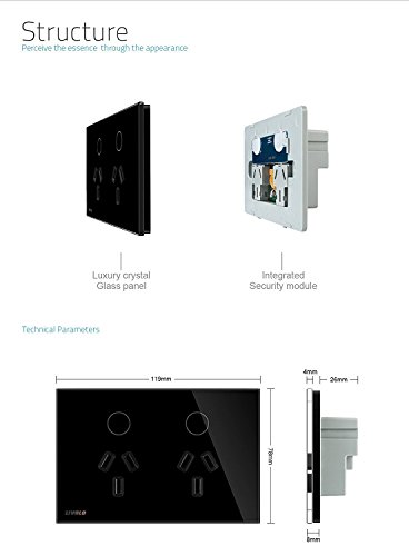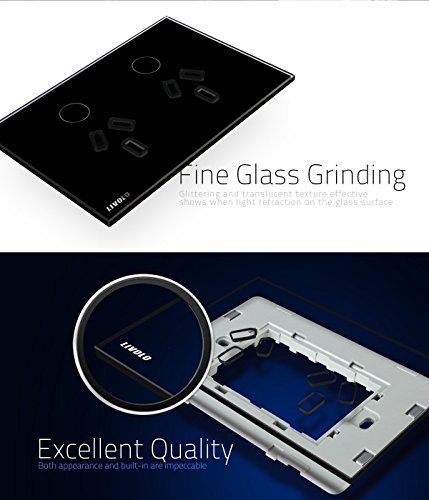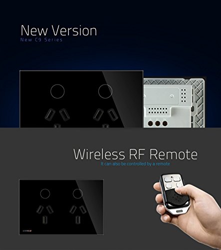 LIVOLOブラックAU / USスタンダード、オーストラリアパワーソケットリモートコントロール機能付き、強化ガラスパネル、119mmx78mm、110-220V、C9C2AUR-12