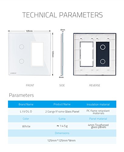 Livolo高級ホワイトパールガラス、米国標準、2ギャング& 1フレームガラスパネル、vl-c5-c2 / sr-11