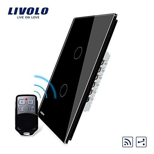 LIVOLOブラック米国標準2Gang2Way LEDインジケーター付きワイヤレスリモートタッチスイッチVL-C502SR-12