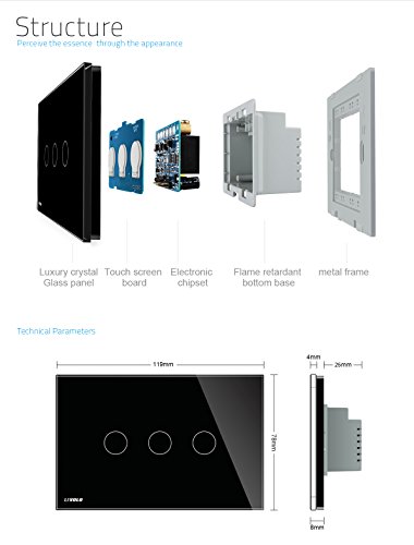 LIVOLO ブラック米国標準3 Gang1 Way 調光&リモートスイッチwith LEDインジケータAC 110 – 220 V、 -C903DR-12