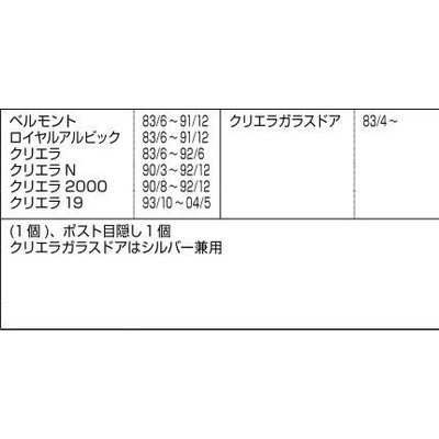 商品部品コード L1X48 商品名 発売時期:ベルモント83/6~91/12 ロイヤルアルビック83/6~91/12 クリエラ クリエラN クリエラ2000 83/6~92/6 クリエラ19 92/6~04/11 部品名称 ポスト目隠し 備考:本体×1 ネジは現在ご使用のものをお使いください 部品 色 ホワイト