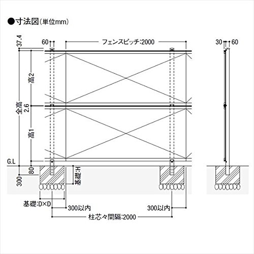 LIXIL 新日軽 セレビューフェンス用2段柱 控え柱なし・60角用 2段自在柱(60角) 高さ:1800用 シャイングレー