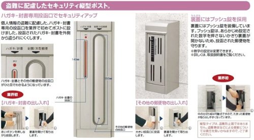 ●個人情報の盗難に配慮した、ハガキ・封書専用の投函口を業界で初めてポストに設けました。投函されたハガキ・封書を外側から盗られにくくします。