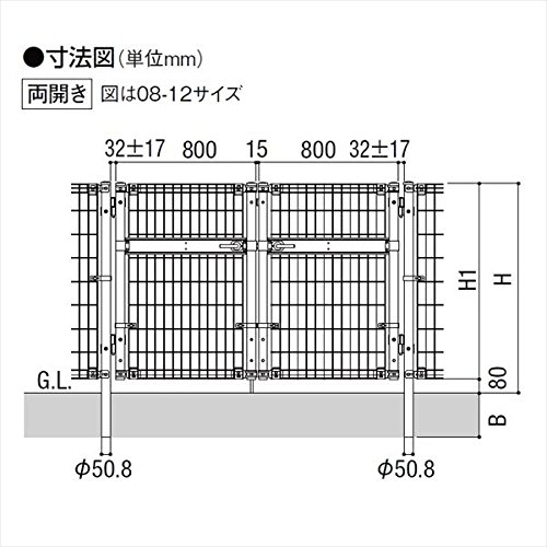 LIXIL TOEX ハイグリッド門扉N1型 柱使用 08-12 両開き 『リクシル』 ビーナスツリーグリーン